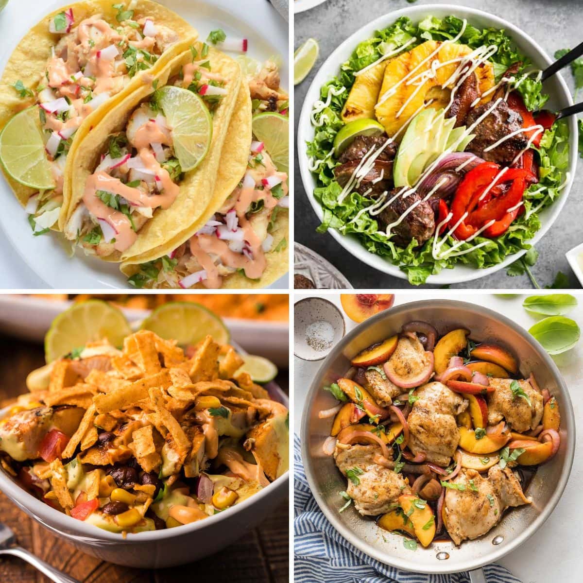 These summer dinners celebrate the season with recipes that are light yet satisfying. This list features everything from balsamic peach chicken to fish tacos.